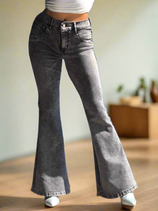 Jeans Campana Gris Deslavado con Levantamiento de Glúteos para Mujer