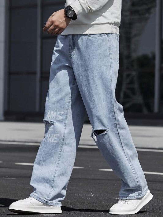 Boyfriend Jeans Azules Cielo Rotos para Hombre