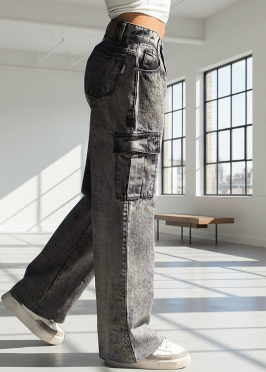 -42% DescuentoPantalones Cargo Gris Acid Wash para Mujer (Rígidos)