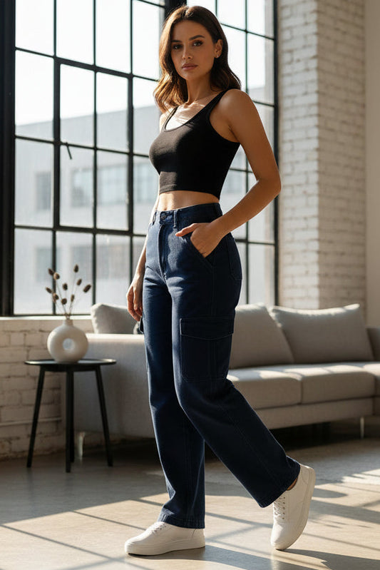 Pantalones Cargo Rectos Levanta Pompis en Azul Rey para Mujer