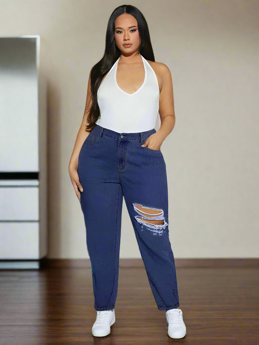 -58% DescuentoJeans Azules Oscuro Rotos para Mujer de Tallas Extras - PDMX