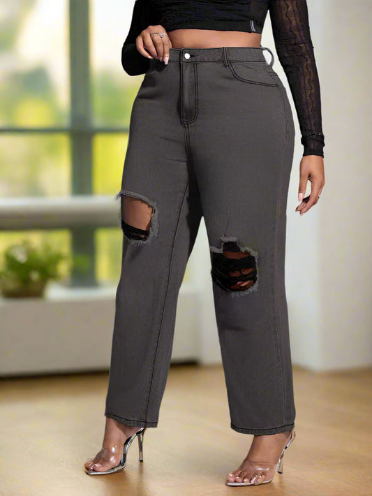 -57% DescuentoJeans Grises Oscuro Rotos para Mujer de Tallas Extras - PDMX