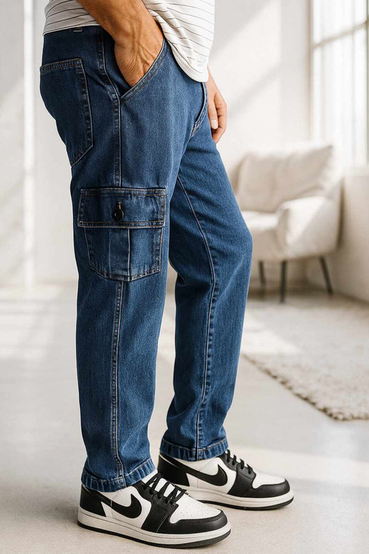 -41% DescuentoPDMX Jeans Cargo Mom Fit Hombre Azul Pizarra