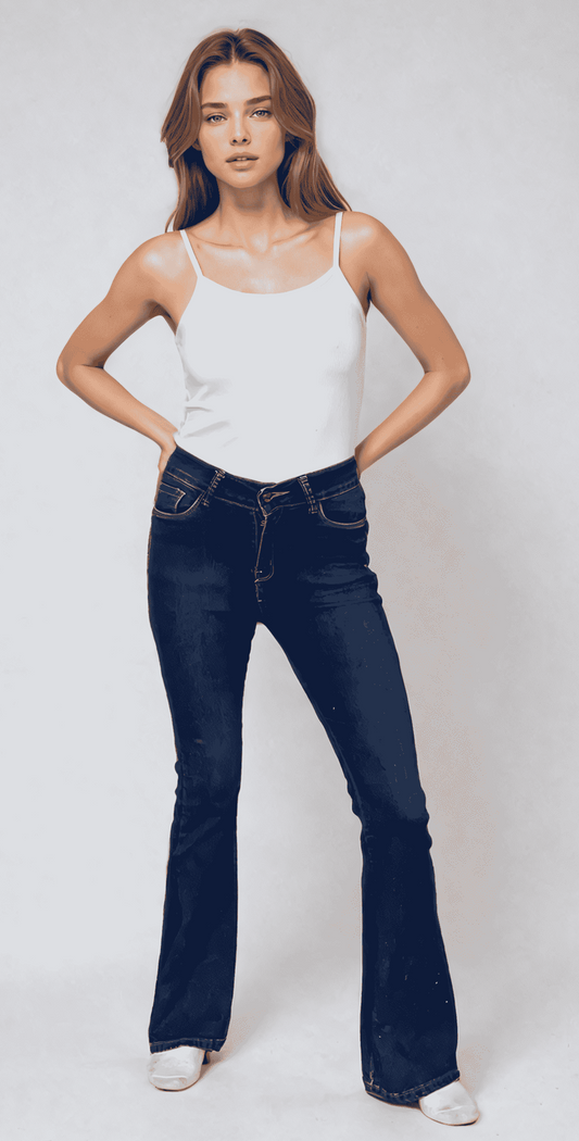 -23% DescuentoMujer Jeans Acampanados Cintura Azul Marino Marca PDMX