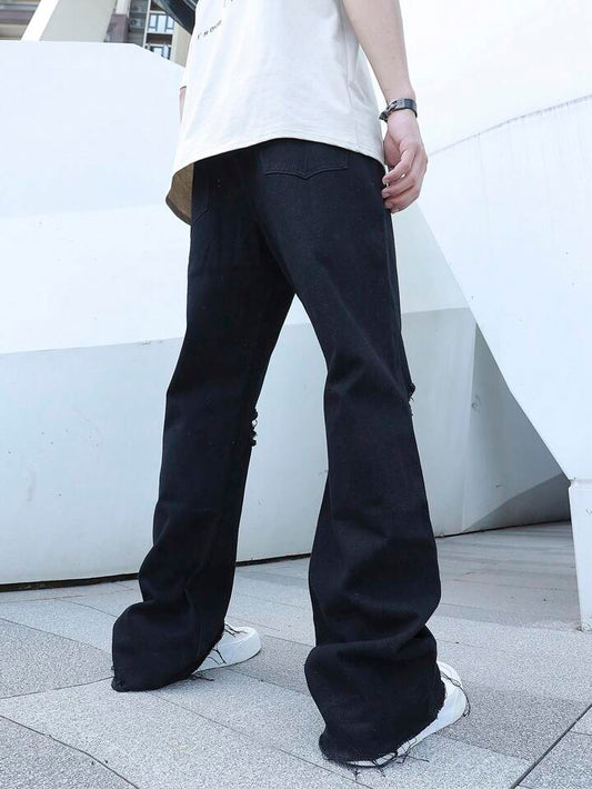 -58% DescuentoJeans de Campana Negros para Hombre de Corte Rotos