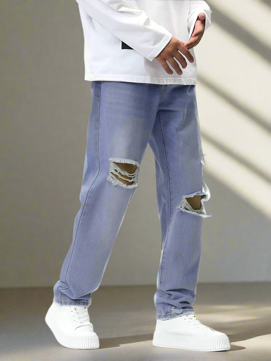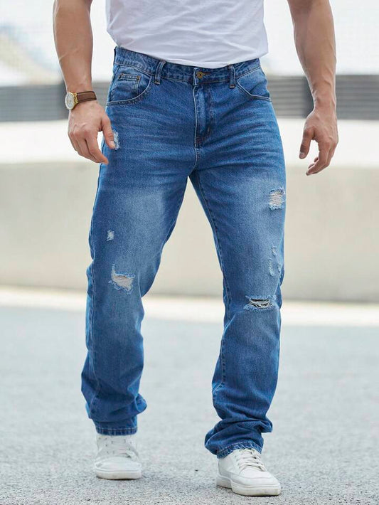 Jeans Straight Hombre Rotos de Azules Desgastados
