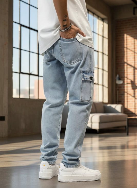 -50% DescuentoJeans Cargo Azules Cielo Regulares para Hombre